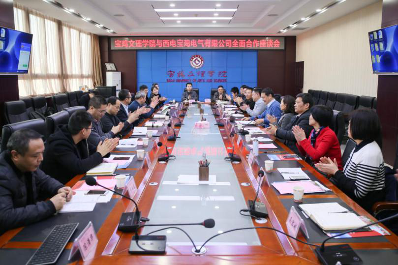 1月17日下午, 西電寶雞電氣與寶雞文理學(xué)院全面合作座談會(huì)在寶雞文理學(xué)院順利召開(kāi)。寶雞文理學(xué)院黨委書(shū)記白黎、西電寶雞電氣總經(jīng)理謝洪濤出席會(huì)議并講話。