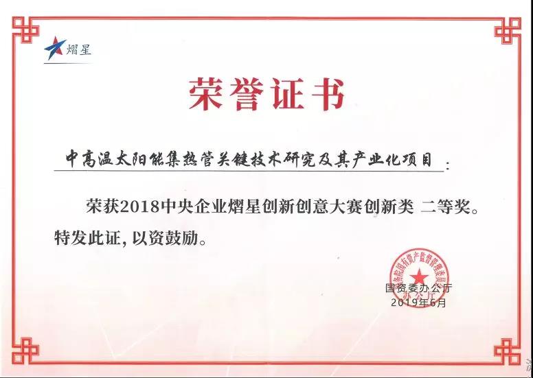 近日,由中國西電集團推薦,寶光股份申報參賽的《中高溫太陽能集熱管的關(guān)鍵技術(shù)研究及其產(chǎn)業(yè)化》獲得2018年中央企業(yè)熠星創(chuàng)新創(chuàng)意大賽二等獎。