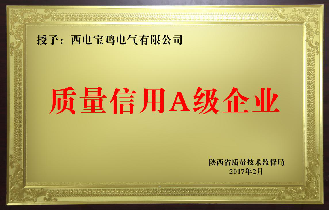 1、2月,我公司獲得陜西省質(zhì)檢局“質(zhì)量信用A級企業(yè)”稱號。