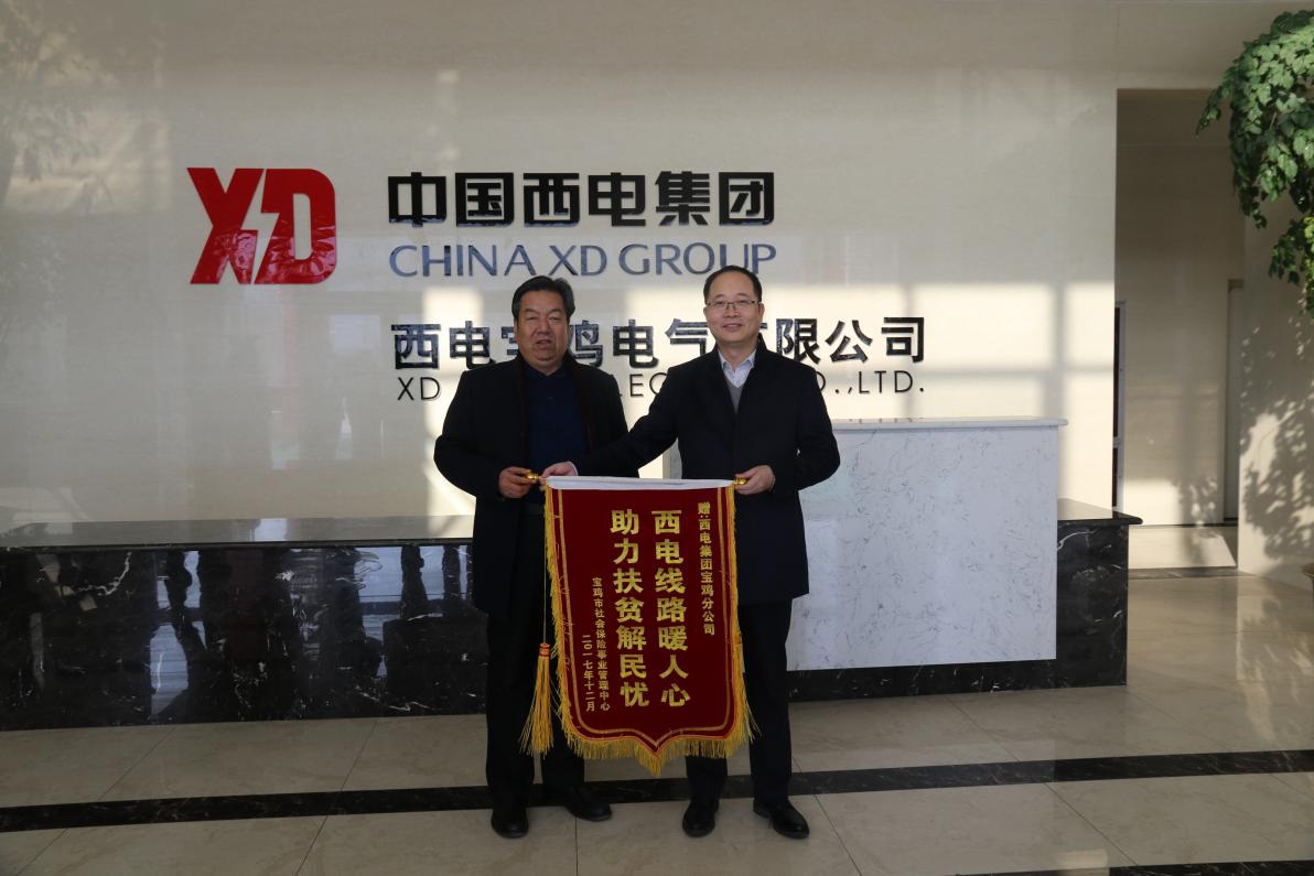 1月11日下午,寶雞市社會保險事業(yè)管理中心一行6人,為西電寶雞電氣有限公司送來了印有“西電線路暖人心,助力扶貧解民憂”的錦旗,感謝西電寶雞電氣有限公司對他們的扶貧點—寶雞市陳倉區(qū)坪頭鎮(zhèn)南皂村的精準(zhǔn)扶貧、大力幫扶。