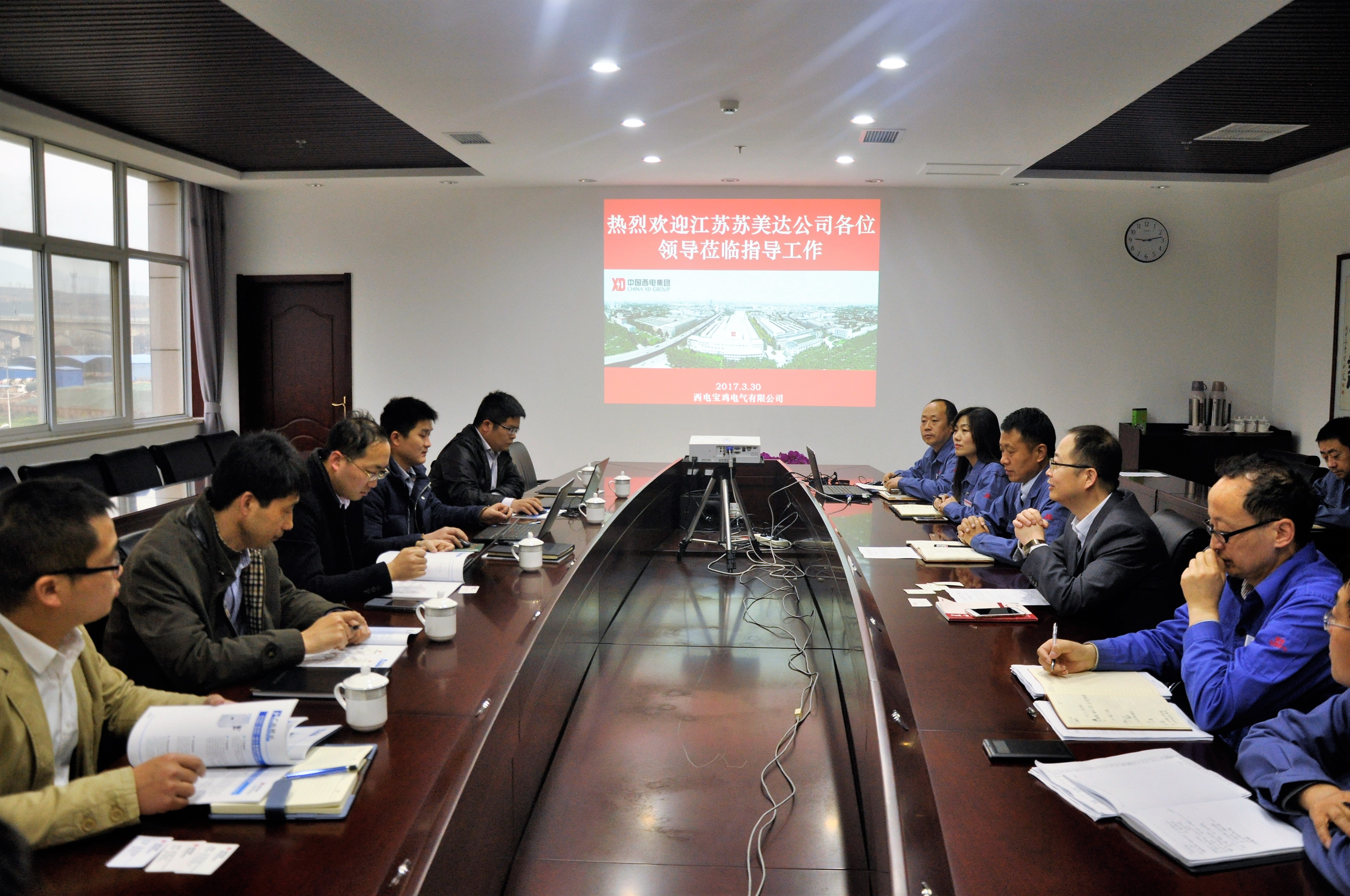 經(jīng)過西電集團與國機集團前期的業(yè)務對接洽談,國機集團江蘇蘇美達能源公司于3月30日與西電寶雞電氣在寶雞中壓產(chǎn)業(yè)基地進行了首次業(yè)務洽談對接,西電寶雞電氣總經(jīng)理朱安珂,副總經(jīng)理馮仁斌,蘇美達能源控股公司采購中心、質量安全中心、運維部、工程公司等部門負責人及西電寶雞電氣相關部門負責人參加了會議。