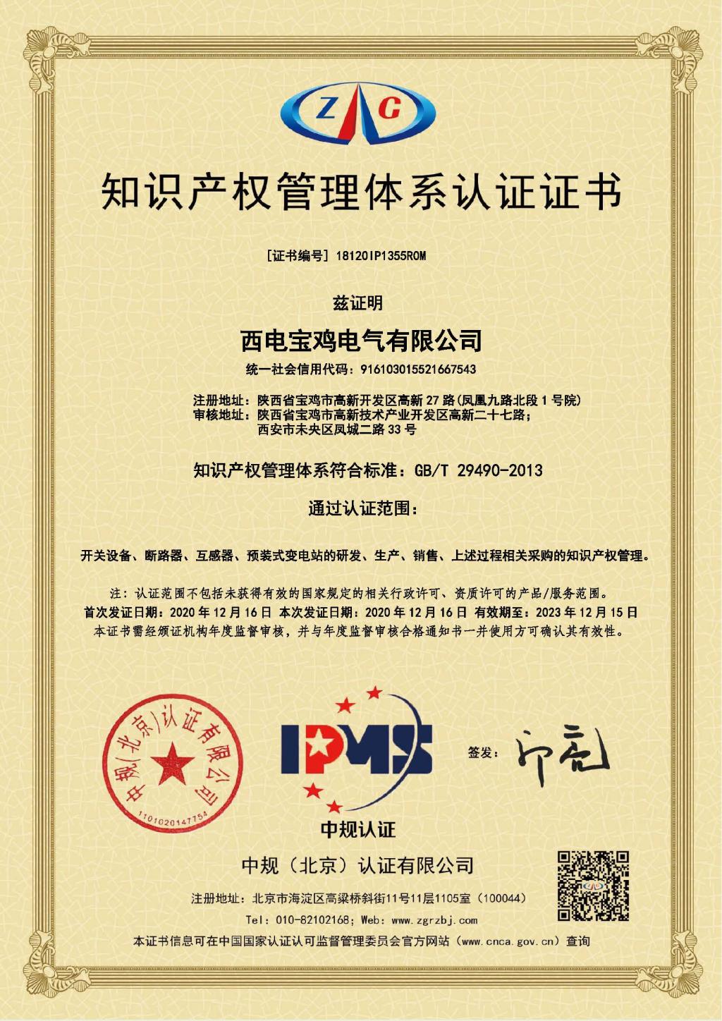 12月11日—12日,來(lái)自中知(北京)認(rèn)證有限公司的3位評(píng)審專家,對(duì)西電寶雞電氣《企業(yè)知識(shí)產(chǎn)權(quán)管理規(guī)范》(GB/T29490-2013)進(jìn)行了貫標(biāo)審核。2020年12月16日,西電寶雞電氣正式取得知識(shí)產(chǎn)權(quán)管理體系認(rèn)證證書(shū)。