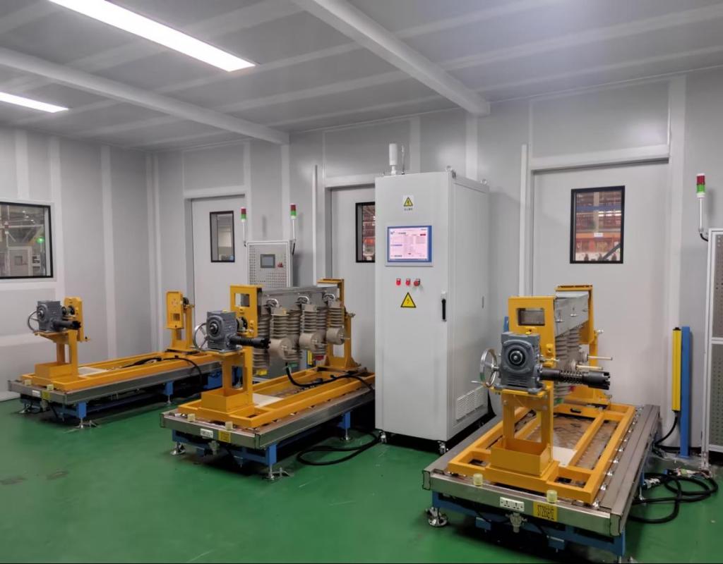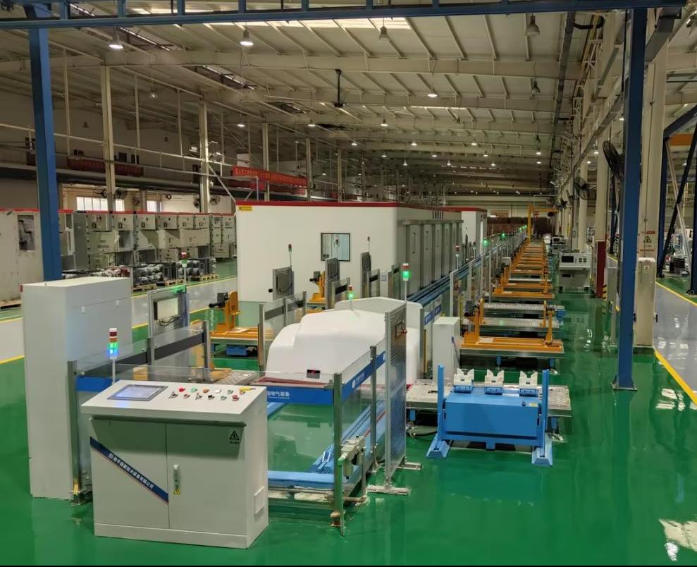該產(chǎn)線由戶外柱上開關(guān)零部件裝配、關(guān)鍵性能檢測以及一二次融合成套設(shè)備性能檢測組成,智能化、自動(dòng)化水平高,可以滿足國網(wǎng)一二次融合產(chǎn)品的生產(chǎn)及性能檢測。