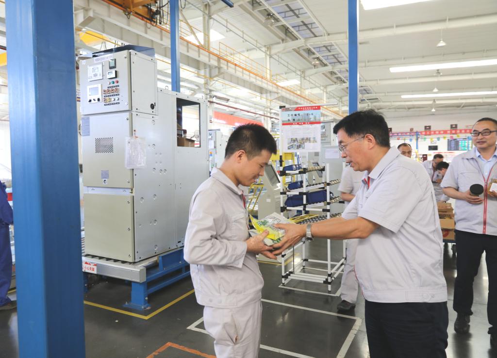 烈日高溫,酷暑來襲,西電寶雞電氣各生產(chǎn)班組的職工們與熱浪作斗爭,堅守奮斗在一線各個工作崗位,趕生產(chǎn)、保履約。7月31日下午,為關心關愛一線職工,西電寶雞電氣班子成員一行,向一線職工表示慰問,送上清涼。